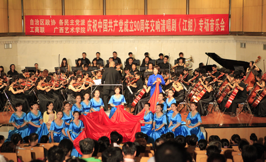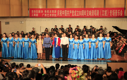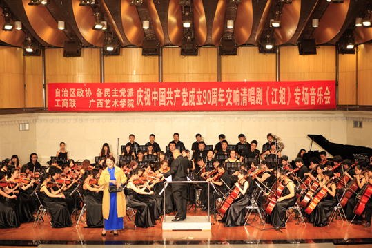 学院“交响清唱剧《江姐》”创作项目设立于今年三月,主创人员主要由学院民主党派成员、无党派人士、党外知识分子等统一战线成员构成。他们怀着对英雄的崇敬,对党和祖国的热爱之情,经过三个月的努力,终于在中国共产党成立90周年前夕完成项目,成功演出。